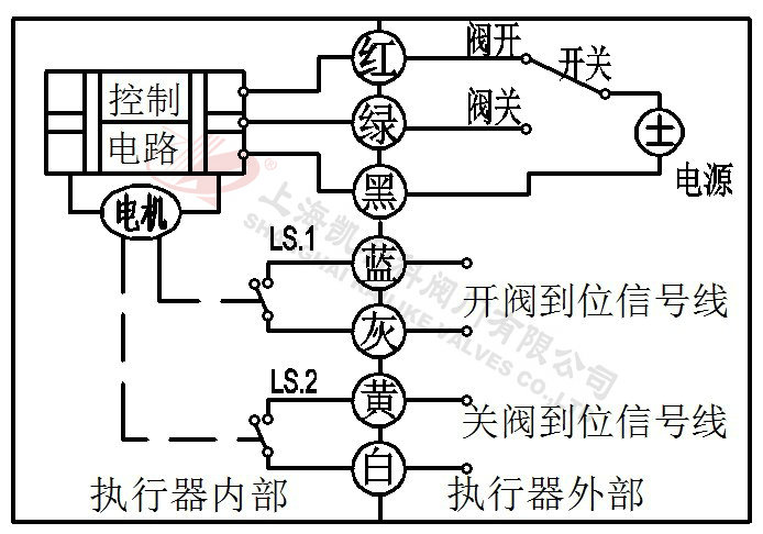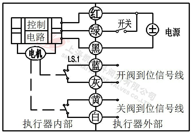 3、當(dāng)綠線開關(guān)斷開,閥門關(guān)閉,到位后執(zhí)行器內(nèi)部自動斷電。