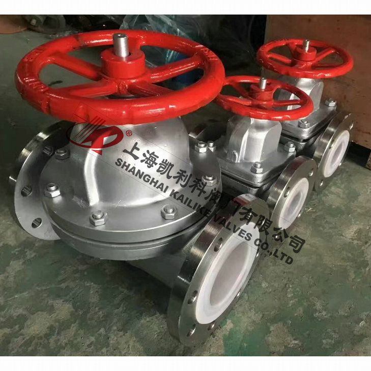 G41F46不銹鋼襯氟隔膜閥將閥體下部內(nèi)腔與閥蓋內(nèi)腔隔開,并與之形成直流通道,使隔膜上部的閥桿、閥瓣等內(nèi)件與介質(zhì)完全隔離,省去填料密封結(jié)構(gòu),介質(zhì)的內(nèi)漏和外漏可同時避免。表面均勻包覆一層FEP。閥體通道內(nèi)表面光滑,流體阻力小,CV值高,流通能力強(qiáng),扭矩適中,采用四級密封結(jié)構(gòu)并在密封面外配以耐溫抗老化的SI橡膠的彈性襯墊閥座,完全達(dá)到介質(zhì)的零泄漏。